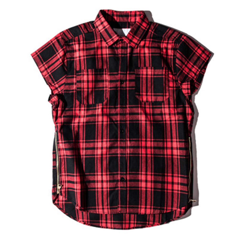 Men Mens Street Hem Arc Skull Cut Shoulder Short Sleeve Lapel Plaid Shirt Foretadrenaline Com