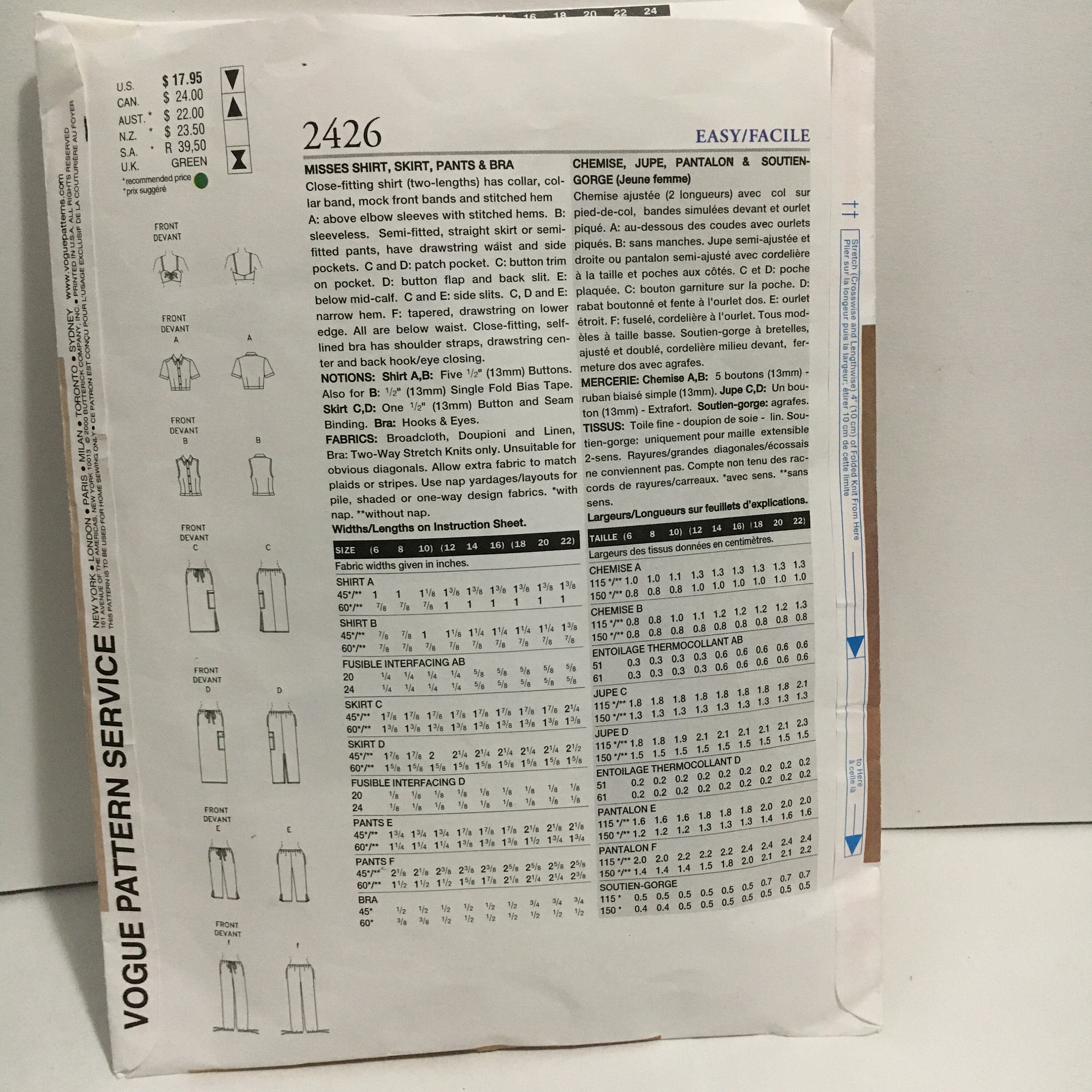 Vogue Women S Pattern Sizes 121416 Etsy Canada